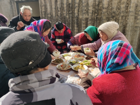 本次春节团圆饭在独居老人韩呈兰奶奶家中开展,一大早韩奶奶热情地张罗着,村民志愿者手脚麻利地起锅烧油,尽显大厨风范,由新加入志愿者队伍的候翠兰、朱应兰从旁协助,并带着社工忙前忙后布置一切,大家互帮互助共同做一顿爱心团圆饭,促进老人邻里齐聚一堂,提前感受过年气氛,共享春节欢乐。
