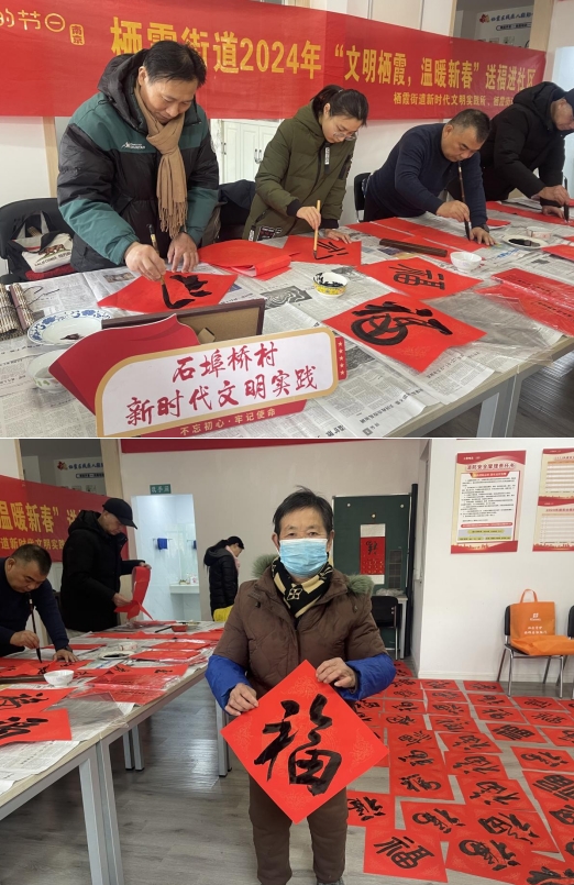 在春节来临之际,为传承中国传统文化,营造浓厚节日文化氛围,给社区居民送祝福,让大家感受到社区温暖。近日,南京市栖霞区栖霞街道石埠桥村社区联合联合栖霞街道文化站、社区残疾人之家共同开展新春送福字活动。