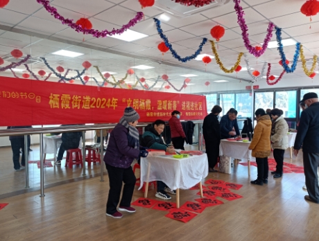 1月24日下午,南京市栖霞区栖霞街道新时代文明实践所,栖霞街道文化站联合栖化新村社区新时代文明实践站、科协、居家养老服务站及退役军人志愿队开展“喜迎新春 笔墨生辉”写福写春联活动。老年居民朋友和辖区青少年积极参与,共同为新春增添喜庆祥和的氛围。