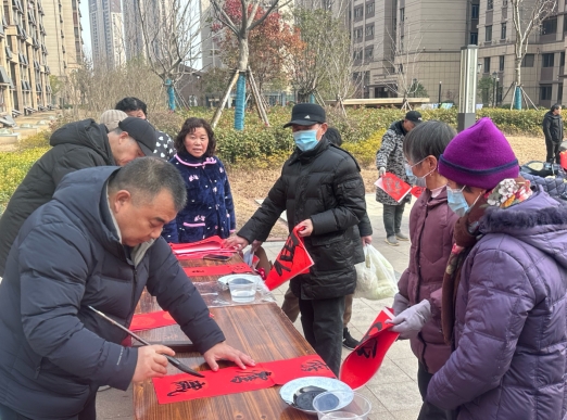 活动现场热闹非凡,书法家们挥毫泼墨,一幅幅精美的春联和福字跃然纸上。居民们纷纷围在桌前,欣赏着书法家的作品,小区的小朋友们还主动请求为自己写上一幅心仪的春联。社区工作人员也忙着将写好的福字送到居民家中,同时也给社区的残疾人等特殊群体送上春联,让他们在新春佳节感受到社区的温暖和关怀。