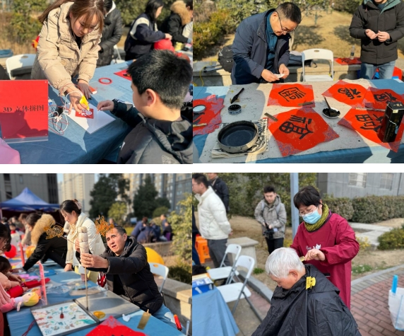 此外,为了让大家感受到浓厚的节日氛围和家的温暖,在这里可以尝试写春联送福字、体验新年窗花剪纸、手工灯笼制作等活动,还可以在网红小龙人打卡点留下你的美好瞬间。同时,为了满足大家的口腹之欲,上坊社区还提供了龙年手工包、3D立体拼图、甜品爆米花、非遗糖画、套圈等美食。还有暖心理发服务,让你在新的一年从头开始,焕发新的活力。在这里,每个人都能找到自己喜欢的活动,尽情享受这场“家门口”的文化盛宴,让大家感受到社区的温暖和文化的魅力,共同迎接一个美好的新年。