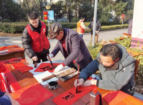 新春佳节将至,为营造欢乐喜庆、温馨、和谐的节日气氛,弘扬了中华优秀传统文化,增强居民的幸福感、获得感,1月26日,章村社区新时代文明实践站在汇景新苑小区举行文化进万家——“迎新春 送福字”活动,邀请书法老师们到小区为居民们免费题写春联、发放“福”字。