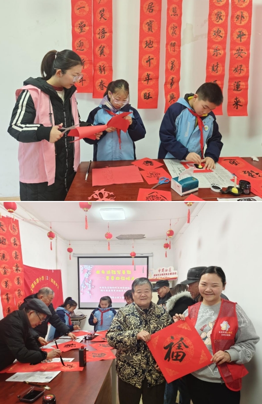 现场还有拓印福、剪窗花等传统民俗活动。居民们纷纷围在桌前,欣赏着书法爱好者和小学生们的精彩表演,感受着浓浓的年味和温馨的社区氛围。活动结束后,书法爱好者和小学生们来到老人们的家中,亲手将“福”字和对联送到他们手中,祝愿老人们新春快乐、身体健康。老人们接过“福”字和对联,脸上洋溢着幸福的笑容,他们激动地表示,这不仅是他们收到的最好的礼物,更是他们感受到的最温馨的关爱。