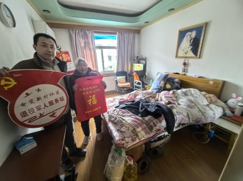 燕子矶街道电瓷新村社区的退役军人服务站副站长陈亮近日在春节来临之际,为社区内的特困退役老兵们送去了关怀和温暖。陈亮不仅探望了陈凤英、曹玉登两位特困退役老兵,还对抗美援朝老兵吴德友、遭遇重大变故的姚军年两位退役军人表达了深切的慰问。