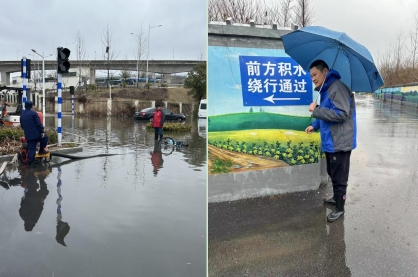 2月20日,南京突降大雨,石坝社区辖区道路出现了淹积水的情况。社区立即组织工作人员及“掌上云”积分志愿者清理辖区路面积水、淤泥、垃圾,及时应对降雨给居民出行带来的影响。