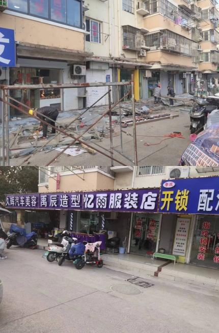 近期,在日常的网格巡查中,润康苑社区工作人员发现融康苑27栋的门面房存在严重的安全隐患。门头脱落、下沉、断裂等问题不仅影响了市容市貌,更对周边居民的出行安全构成了严重威胁。