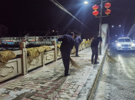 为尽快消除积雪冰冻带来的不利影响,街道城管办严格落实“机械集中除雪+人工精细扫雪+即时清运积雪”的作业要求,工作人员保持着“雪停人不歇”的工作热情,持续加大力度清扫桥梁、人行道等区域积雪积冰,及时恢复道路安全通行。并积极动员沿街商户落实“门前三包”责任制,清理门前积雪积冰,主动参与到扫雪防冻工作中,共同创造洁净、美丽的居住环境。