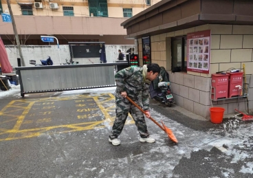 近日,电瓷新村社区民兵组织了一场扫雪除冰行动,旨在清除胜利村内的积雪和冰冻,确保村民的出行安全,消除安全隐患。