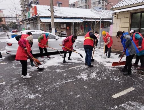 由于昨天南京降雪和低温,小区内的道路、公共场所都积存了厚厚的雪和冰。这不仅给居民的出行带来了不便,更存在严重的安全隐患。为此,电瓷新村社区网格员积极行动,带领志愿者们投入到这场扫雪除冰的行动中。