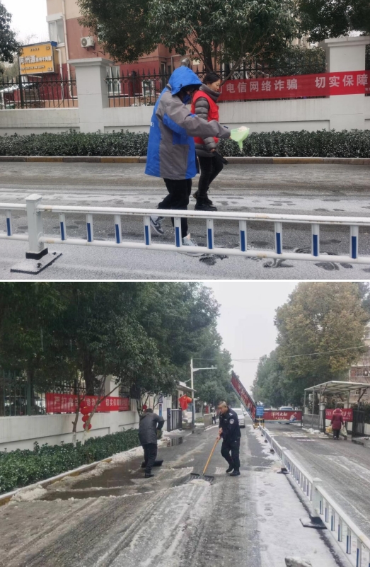 清积雪志愿活动开始后,虽然天气寒冷,但也丝毫不减志愿者们的扫雪志愿服务热情。首先部分志愿者们在积雪冰冻路面撒融雪剂和盐,帮助破冰扫雪志愿者更快的清理;其余志愿者拿着铁锹奋力地将积雪冰冻清除,面对着积雪志愿者们勇往直前,不退缩、不畏难,最终在志愿者们的共同努力下,小区内积雪冰冻的地方被清理干净。志愿者们用自己辛勤的付出,保障了辖区居民在元宵佳节安全出行,度过平安欢乐的节日。