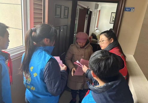 随后,学生们又分成小组,上门入户宣传楼道安全知识。他们向居民们耐心讲解了楼道内禁止堆放杂物的重要性,提醒居民们保持楼道畅通,确保居民的安全出行。同学们的热情和认真态度得到了居民们的一致好评。