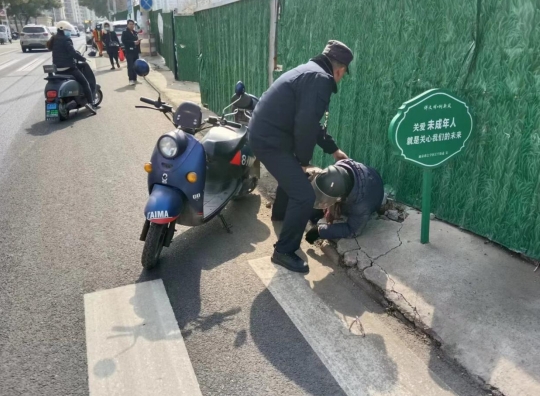 市民骑车摔倒 江宁街道城管暖心相助