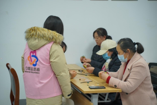 随后,活动现场进入了实践环节。在老师的指导下,参与者们亲自动手,体验了缠花发簪的制作过程。他们从选材、设计到缠绕、装饰,每一步都充满了挑战和乐趣。社区工作人员和志愿者也随时提供着帮助,经过一个多小时的精心制作,一件件精美的缠花发簪逐渐呈现在眼前。参与者们在欣赏自己的作品的同时,也感受到了传统技艺的独特魅力。