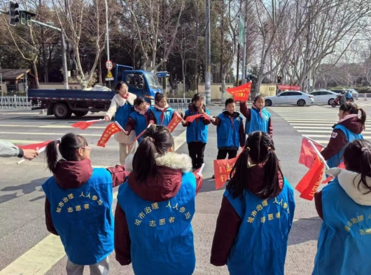 活动当天,少先队员一早便到达了集合地点,在社区工作人员和志愿者的引导下兵分两路,一队带着毛巾、水桶、拖把等清洁用具走进社区居民楼,化身“清洁小达人”,围绕小区开展环境卫生大扫除;另一队少先队员则出现在社区交通路口,和交警叔叔一起,参与交通秩序维护,成为“文明交通代言人”。早春的清晨寒意犹在,可抵不住少先队员们参与活动的热情,无论被分配在哪个岗位,他们个个精神抖擞,积极劳动,充分发扬了不怕脏、不怕累、不怕辛苦的奉献和志愿精神。