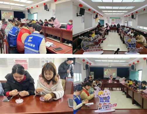 人间三月,桃之夭夭、灼灼其华。在“三八”国际妇女节来临之际,为了体现社区对女性同胞的关爱,更好地展现女性的风采,以健康向上、充满活力的精神面貌树立女性形象,培养我们女职工积极向上的生活态度,用健康的身体和心理素质投身于工作中,同时帮助辖区女性失业人员灵活就业。3月7日,南京市栖霞区马群街道百水家园社区联合工会委员会联合社区妇联在新时代文明实践站组织社区女性工会会员、“博爱家园”积分女性志愿者,女性工会会员和辖区失业女性开展了“巧手巾帼,魅力指尖”串珠diy手工活动。