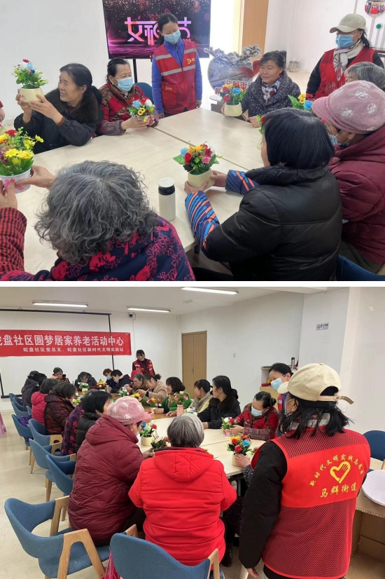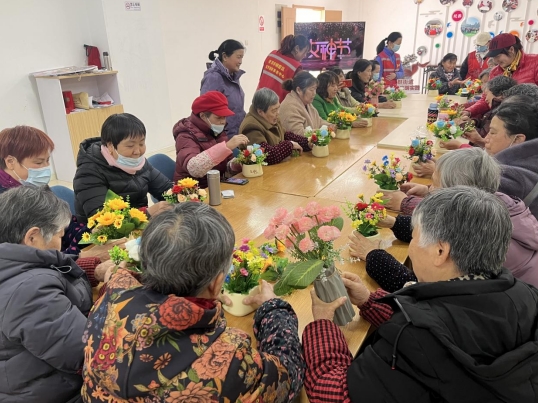 2024年3月8日国际妇女节当日下午,南京市栖霞区马群街道蛇盘社区新时代文明实践站联合圆梦居家养老服务中心为辖区老年居民开展环保插花活动。此次活动以“绿意盎然,环保同行”为主题,通过插花这一传统艺术,传递环保理念,倡导绿色生活方式,让居民们在欣赏美的同时,更深入地理解和践行环保精神。