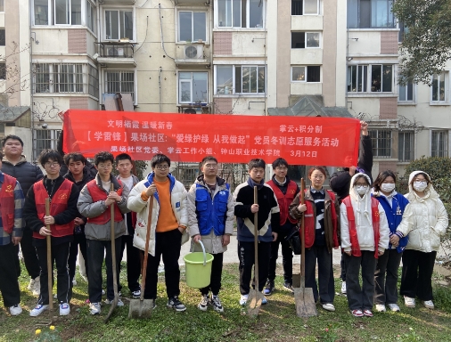 2024年3月12日植树节,南京市栖霞区马群街道果场社区党委、掌云工作小组联合钟山职业技术学院,依托社区新时代文明实践站,组织社区党员、“齐益果”积分制志愿者在小区绿化区域进行学雷锋主题的“爱绿护绿 从我做起”党员冬训志愿服务活动。