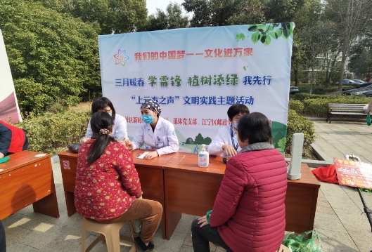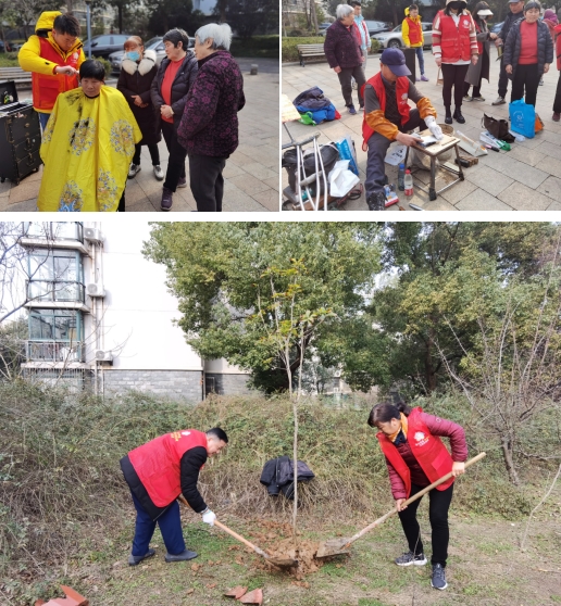植树现场,退休党员们纷纷热情高涨,一派热火朝天的景象,挥锹铲土、培土围堰、提水浇灌、扶树正苗,合力栽下蜜桔、栀子花等十几棵树苗,为小区绿化再补新装。此外还设有健康义诊、义务理发、磨刀、反电诈宣传等摊位,居民络绎不绝。在健康义诊区,医生们认真问诊,耐心解答,为居民提供了科学的健康指导;磨刀、理发等便民服务摊位也是“生意火爆”,居民将自家用钝的菜刀拿出来,不一会儿,刀具被磨得光亮如新;义剪师傅为居民系好围布,按照老人的期望进行“私人订制”,经过一番仔细修剪,头发都变得十分干净整齐。