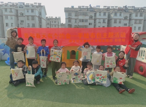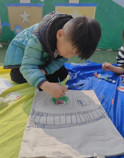 随后,孩子们将自己眼中的春天画到了帆布包上。他们或蹲或坐,或低头沉思或挥笔作画,每个人都沉浸在自己的创作中。在他们的笔下,春天变得栩栩如生,花朵绽放、绿草如茵、小鸟欢歌,一幅幅充满生机与活力的春天画卷展现在大家面前。