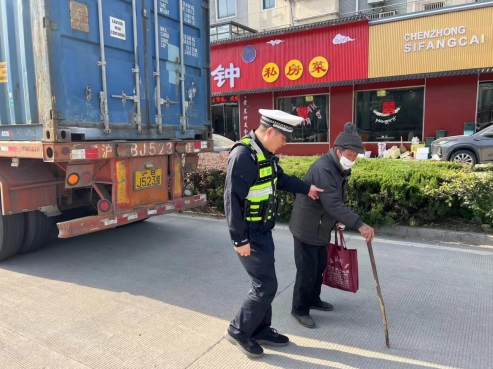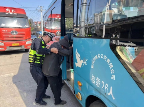 宜兴市交警周铁中队:八旬老人乘车遇难题 热心交警搀扶护送