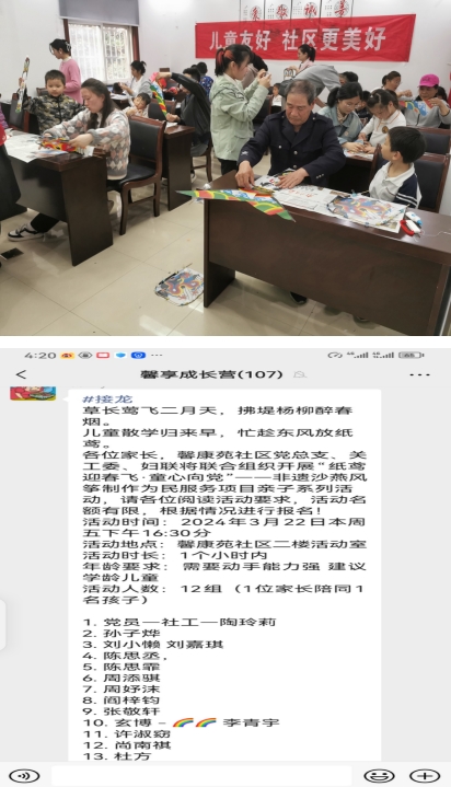 活动前,社区依托“掌上云”信息发布功能在“馨享成长营”群内进行了活动预告和招募,消息一经发出,家长们争先恐后地接龙报名,群内氛围十分活跃。