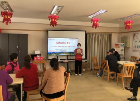 近期,南京市栖霞区尧化街道尧化社区基层党员冬训工作已经逐渐接近尾声,尧化社区新时代文明实践站组织邀请辖区党员一同在枫林新寓居家养老服务站,举行阅读交流分享会,围绕本次冬训的学习书目,结合近期的集体学习及志愿服务展开感悟交流。