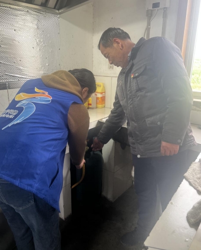 当天,网格员与村长带着深切的关怀,逐一拜访村内的独居老人家庭。他们不仅细心检查了老人们使用的液化气瓶是否正规合格,严谨确认气瓶上的生产日期及检验有效期,以防出现过期未检导致的安全隐患。同时,他们还亲手检查了燃气软管的安装情况,确保无老化破损、无泄漏风险,符合安全规范。