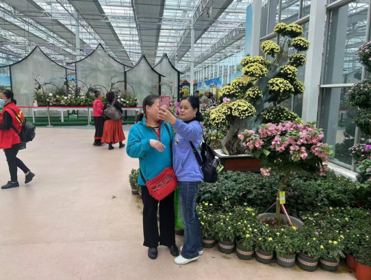 抵达湖熟菊花展区后,五彩斑斓的菊花瞬间吸引了大家的目光。黄的如金、白的似雪、紫的像霞,各种菊花争奇斗艳,美不胜收。残疾人们或驻足观赏,或拍照留念,脸上洋溢着幸福的笑容。志愿者们则耐心地为他们讲解菊花的品种和寓意,引导他们感受大自然的神奇魅力。